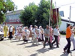 хоругвями и иконами отправились Охранному Кресту. Всю дорогу верующие, среди